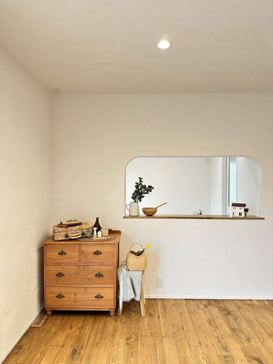 お気に入りの雑貨や小物をちょこんと飾るのにちょうどよく、空間のさりげないアクセントになっています。