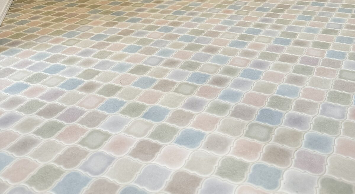 見た目はタイルのような質感でありながら、やわらかな踏み心地とお手入れのしやすさを兼ね備えています。水まわりにも使いやすい床材です。